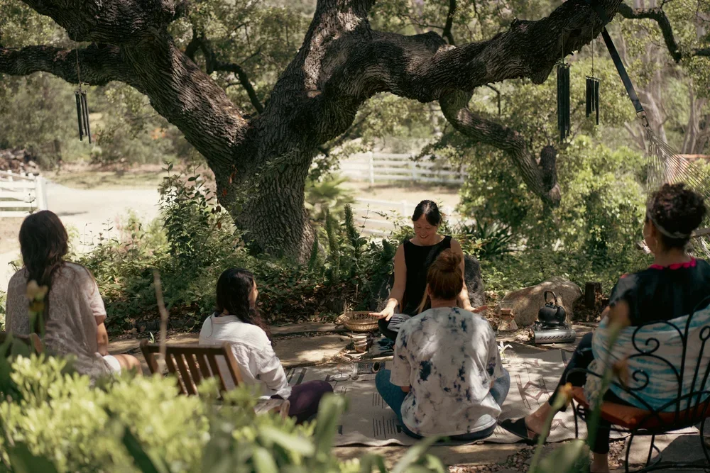 Set on a secluded 5‑acre sanctuary, this retreat takes place in a serene farmhouse nestled among towering Engelmann oak trees.
